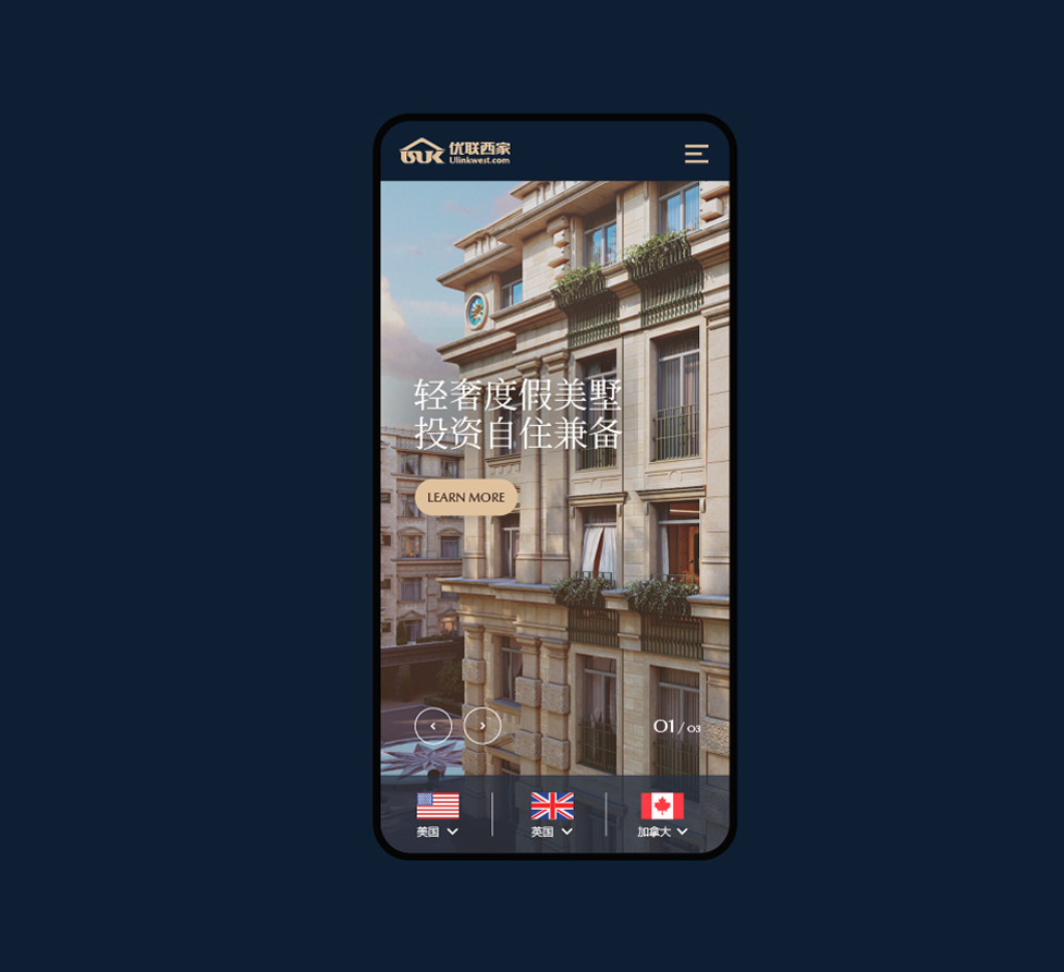 優(yōu)聯(lián)西家是最早進(jìn)入山東市場的海外房產(chǎn)投資企業(yè)之一,合伙人來自美國、英國及澳大利亞等多個國家。優(yōu)聯(lián)西家需要有高檔的品牌官網(wǎng)建設(shè)來展示其多國優(yōu)秀經(jīng)營管理團(tuán)隊,幫助海外土地與房屋在中國的市場開拓工作。