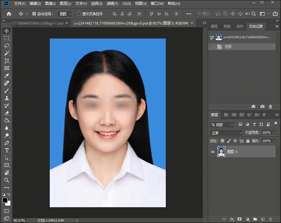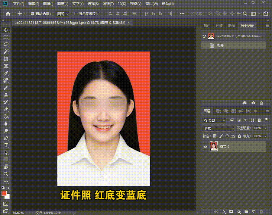 然后再調整背景色相,就可以輕松實現紅底換藍底。